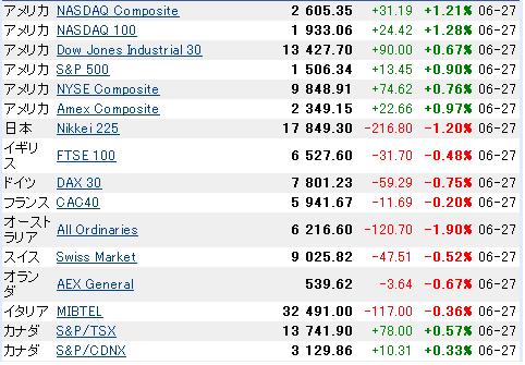 (クリックすると大きくなります) 世界の株価です。 米時間にNY カナダ反発しています。
