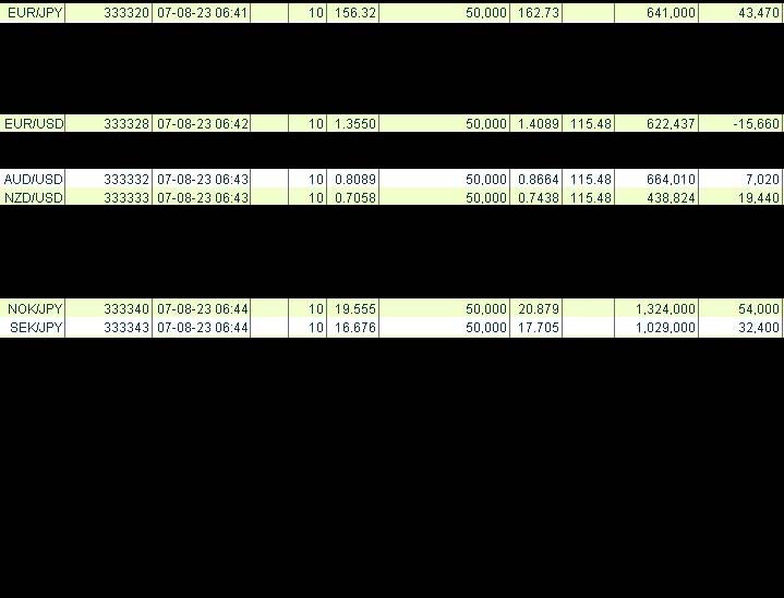 2007.08.23 10ロット買いの利益の出ているクロス円通貨と